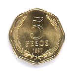Große 5 mit dem Wort Peso und dem Herstellungs Jahr.