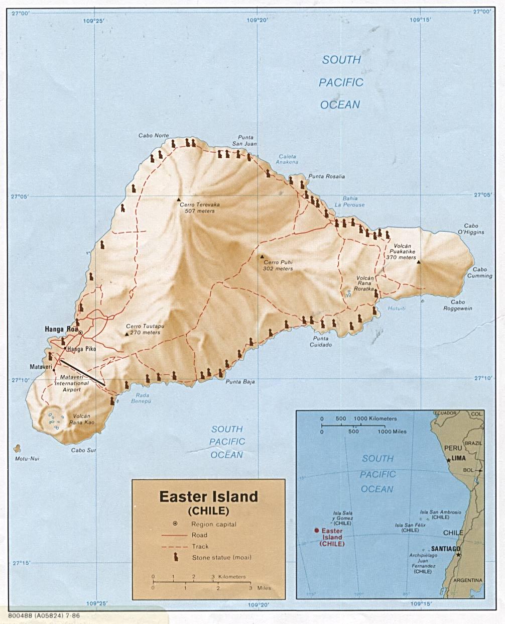 Auf den Osterinseln die im extremen östlichen Teil von Polinesien im Pazifichen Ozean. In einer Entferung von 3.700 km von der Chilenischen Küste und 4.200 km von Tahiti.